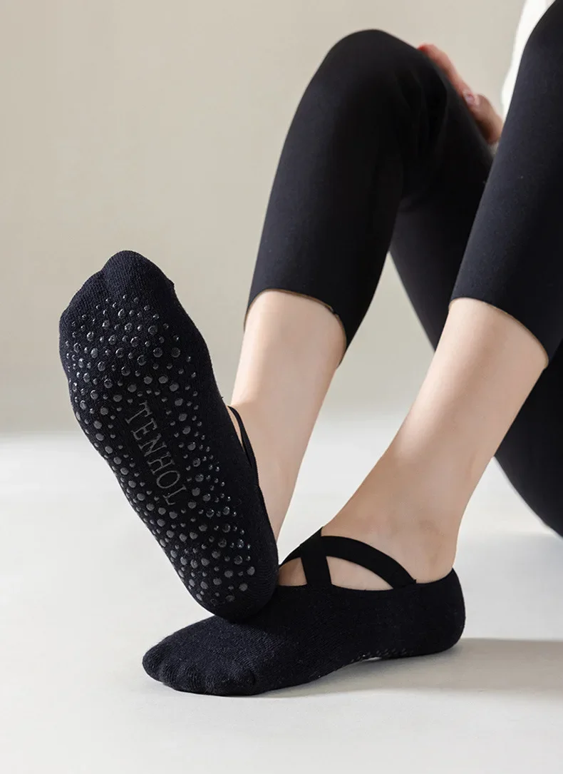 1️⃣ Secure Anti-Slip Design – Silicone grips on soles ensure stability during yoga, dance, Pilates, or intense gym sessions.