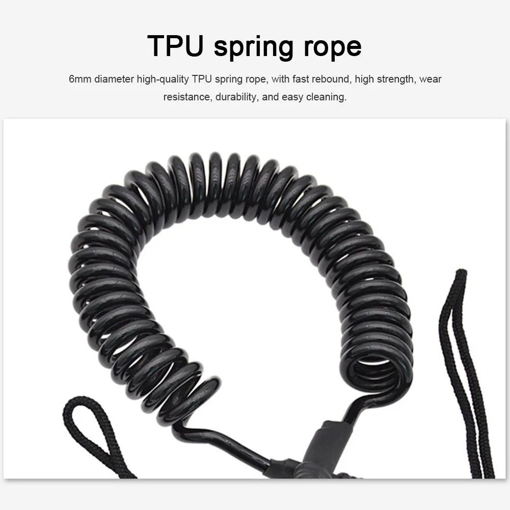 1. High-Quality TPU Spring Rope: The 6mm diameter water sport surfboard leash is made of premium TPU material, ensuring fast rebound, high strength, and excellent resistance to wear and tear. It is a and long-lasting option that can withstand rigorous use over time. Additionally, its easy-to-clean nature allows for hassle-free maintenance.