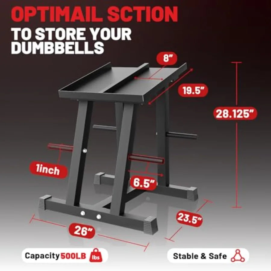 - PERFECT PICKUP HEIGHT: The adjustable dumbbell stand positions dumbbells at perfect waist level(28 inches), eliminating bending or straining to pick up heavy weights. Protect your back and hips while maintaining proper form—designed for smooth, injury-free lifting.