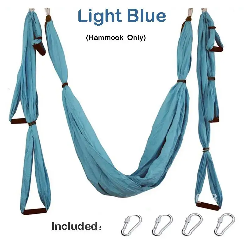 Features:We use high-quality parachute fabric for our yoga swing, and comfortable, soft EVA handles. Builds core and upper body strength.Flexibility and coordination improving.Renewal of the mind and deep relaxation.Our product has strong hooks and slings. The Yoga trapeze can withstand a load equal to the weight of an adult (up to 200 pounds). It is suitable for both men and women.The yoga inversion swing and sling is suitable for inversion therapy for spinal decompression and building upper body strength. Spinal decompression and spine muscles relaxation.The release of oxytocin, the hormone of happiness.Our aerial yoga swing and hammock can be used in a yoga studio, gym, out in the fresh air or at home. This unique equipment lets you practice yoga, train your body and relax your muscles and stretch.