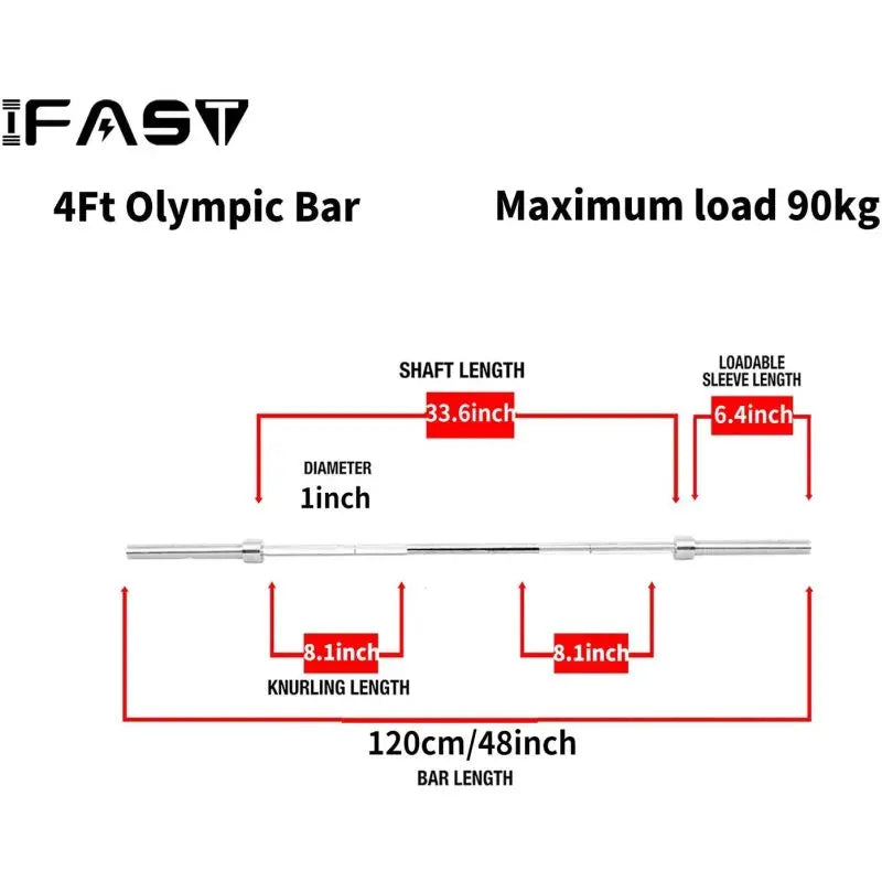 If you have no idea about how to choose the gift to fitness lover, IFAST Olympic Barbell Bar is a great option. You could use it on days you can't make it to the gym or when you need a more intense upper body workout than your dumbell provide. Bar Type: Olympic Weighting Barbell Sleeve Diameter: 2-INCHES (Fits standard 2-in Olympic Weight Plates) Specification: 4Ft Olympic bar, 4Ft Olympic curved bar, 5Ft Olympic bar, 5Ft Olympic curved bar, 7.2Ft Olympic 700lb barbell bar, 7FT Sliver - 20kg chrome Why choose IFAST Olympic Bar? Dual knurl marks for olympic and power lifts, Non-slip grip Olympic size, Hard chrome shaft & rotating sleeves Maximum weight rating: 200lbs/240lbs/700lbs About Shipping: All states in the continental U.S: 3-8 Biz Days to Arrive. Warm tip: Due to manual measurement, the actual size may be a little different, hope to understand.