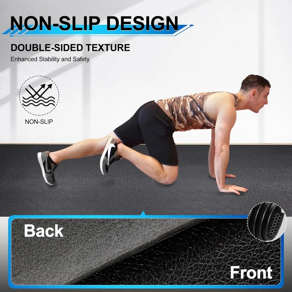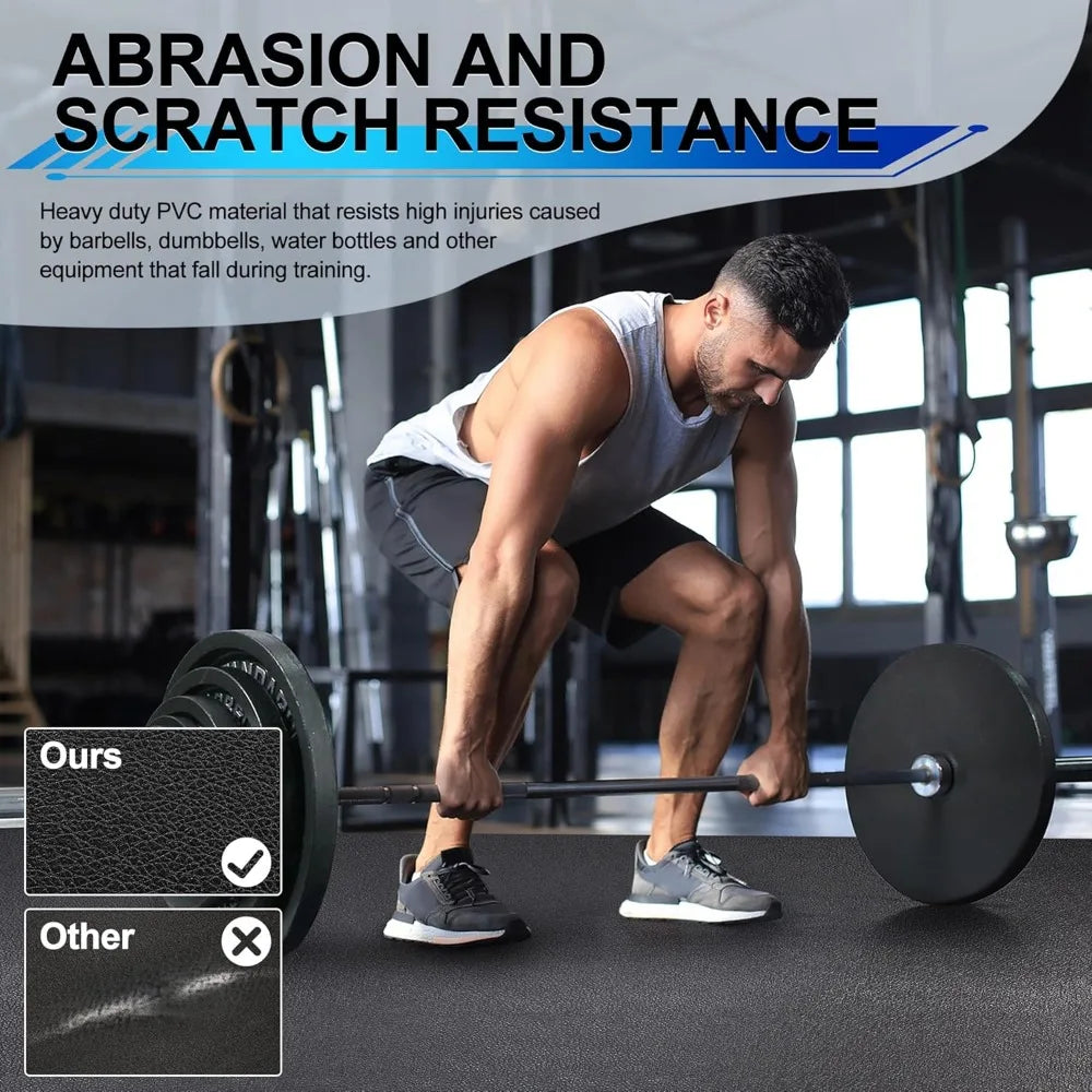 - 【NON-SLIP AND MULTIPURPOSE】: The anti-slip surface keeps the gym floor mat staying put to provide stability on hard or carpet floors; the shoe-friendly surface allows you to work out with or without shoes on the home gym mat. And this workout mat is waterproof and easy to clean and store. It has a wide range of uses, not only for exercise, but also for storing fitness equipment (equipment mats), or for children's game mats and carpets.