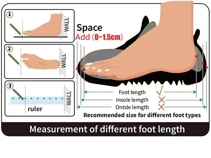 1. Different countries or manufacturers have different size standards, please choose the size only according to your Foot Length.