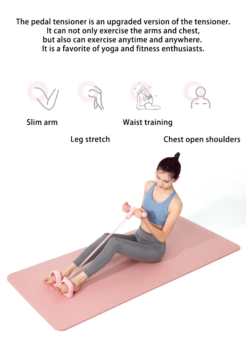 Multifunction Tension Rope 4-Tube Elastic Yoga Pedal Puller Resistance Band Tension Rope for Leg Stretching Slimming Training