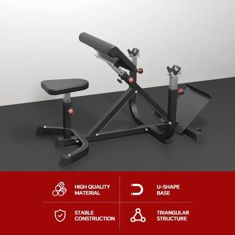 • 【PREMIUM MATERIAL & DURBALE STRUCTURE】: This bicep curl and back extension bench is made of 2" x2", 14 gague steel tube. The triangular support structure eunsures the stability of the machine when you are training. Additionally, the enlarged U shape base has a bigger contact area with the ground which also enhances the stability. The max weight capacity of this workout bench is up to 440lbs.