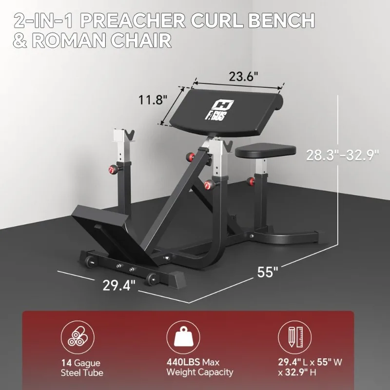 • 【2-IN-1 MULTI-FUNCTIONAL BENCH】: FAGUS H 2-IN-1 multi-functional workout bench adopts the latest full body workout ideas, combing bicep curl bench and roman chair into one machine. With this exercise bench, you can not only use it as a bicep curl bench to build your grip and forearm strength, but also can use it as a hyperextension bench roman chair to strengthen your lower back, glute and hamstring muscles. In this case, you just need much less space to place this bench and the transpot wheels will make it easy to move this bench to anywhere you want!