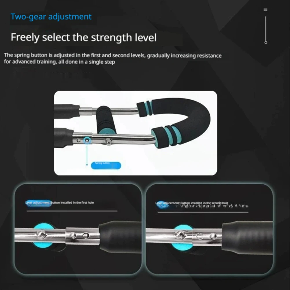 4.Ergonomic U-shaped Handle: The ergonomic U-shaped handle on the arm chest exerciser is slightly curved to fit the palm's shape. Dual-color foam wrapping ensures a comfortable, pain-free grip.