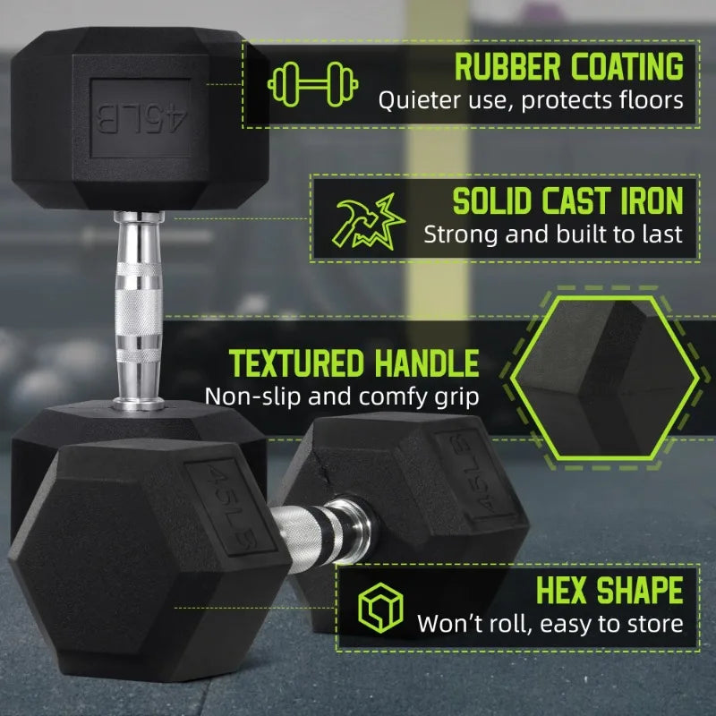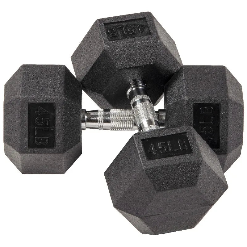 BalanceFrom Rubber Encased Hex Dumbbells, 45 lbs Pair, Black