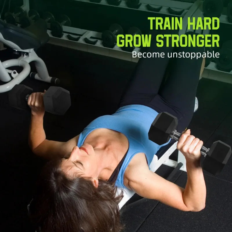 Build total-body strength with the easy-to-use BalanceFrom Rubber Hex Dumbbell. Resistance training is multi-beneficial, helping with total strength, stamina, bone health, calorie burn, and energy levels. Available in a wide variety of weight values from 5 pounds all the way to 50 pounds, the BalanceFrom Rubber Hex Dumbbell helps you create your very own customized weight set to complement your home gym (each weight sold in pairs). Choose your desired weight to accommodate a variety of exercises and users of different fitness levels. Additionally, each weight occupies minimal space in your home. The hexagonal rubber ends on each weight prevent your weight from rolling away or underfoot during your workout. And the partially-knurled chrome handle provides a non-slip grip so you can maximize your strength training routine without dropping your dumbbell.