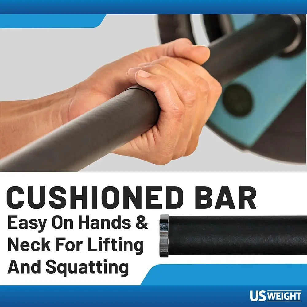 Cushioned bar allows for comfort and versatility while lifting and squatting. The most comfortable bar you will find for a barbell-based workout. included spring clips allow for easy weight changes.
