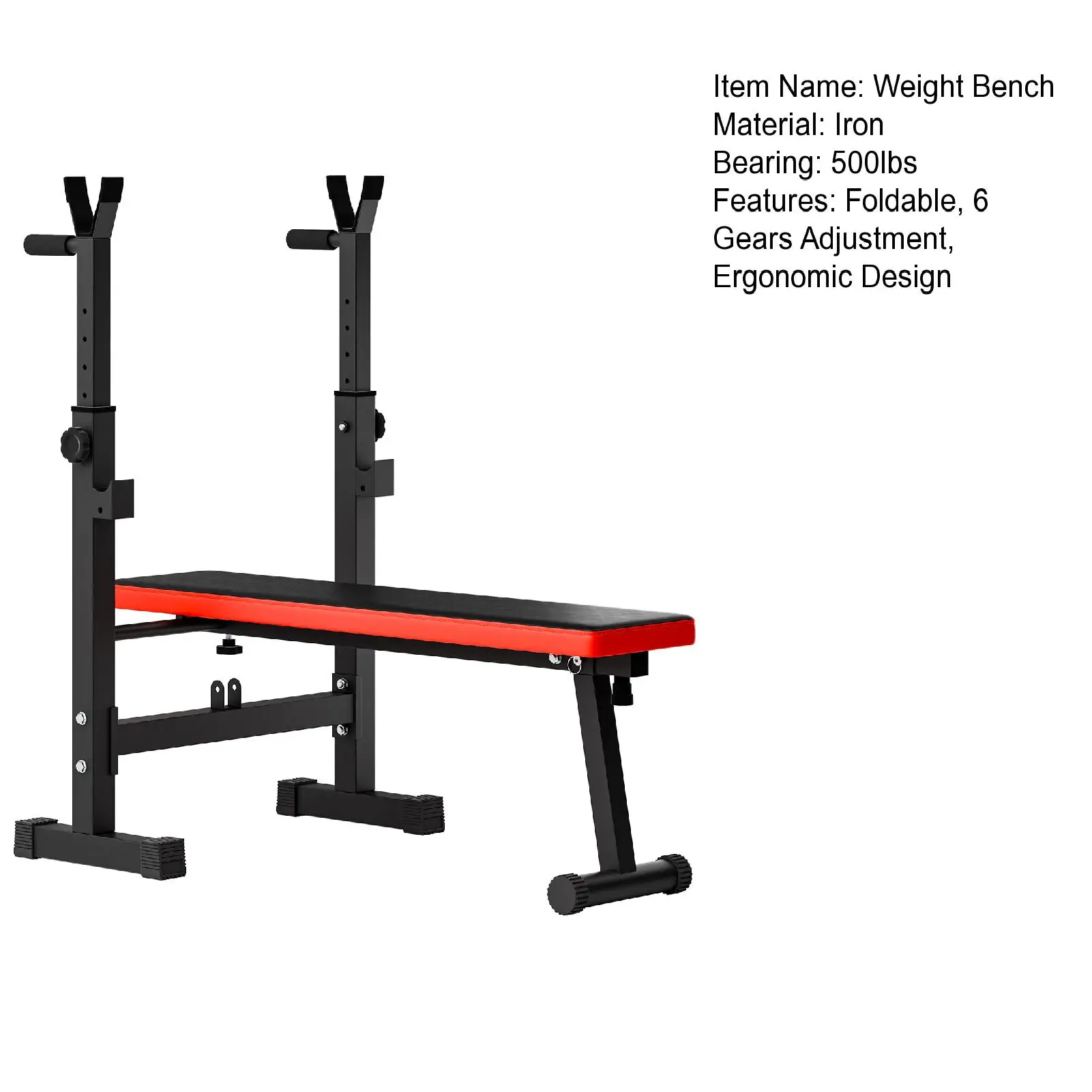 1Pc Bench Press Rack, 6 Gears Adjustable Weight Bench with Barbell Rack, Foldable Weight Lifting Bench Press for Home Gym, Ergonomic Design Iron Strength Training Workout Bench Fitness & Body Building