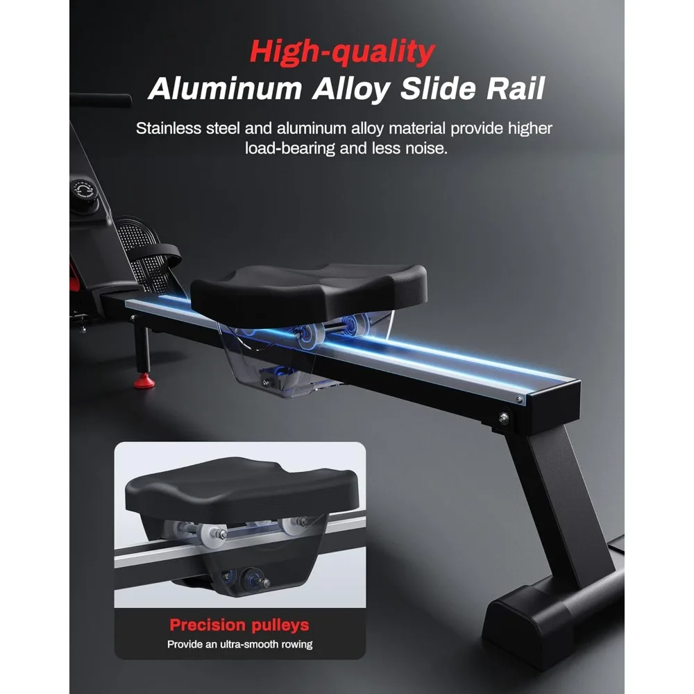 - Quiet and Smooth: The rowing machine is equipped with an advanced flywheel magnetic resistance system. With noise levels below 30 decibels, you can enjoy rowing quietly without disturbing your family or neighbors. The smooth resistance ensures a comfortable experience with every pull.