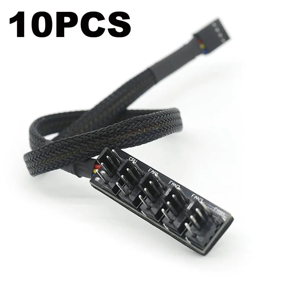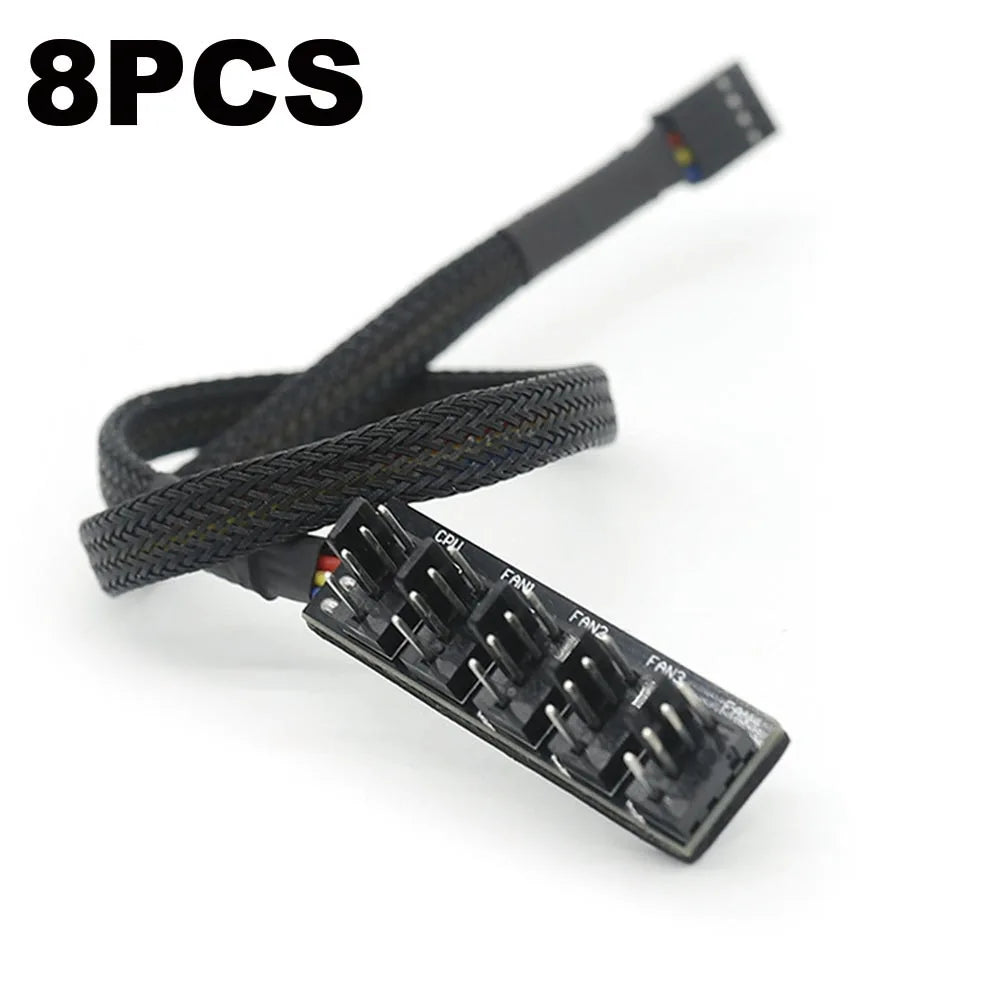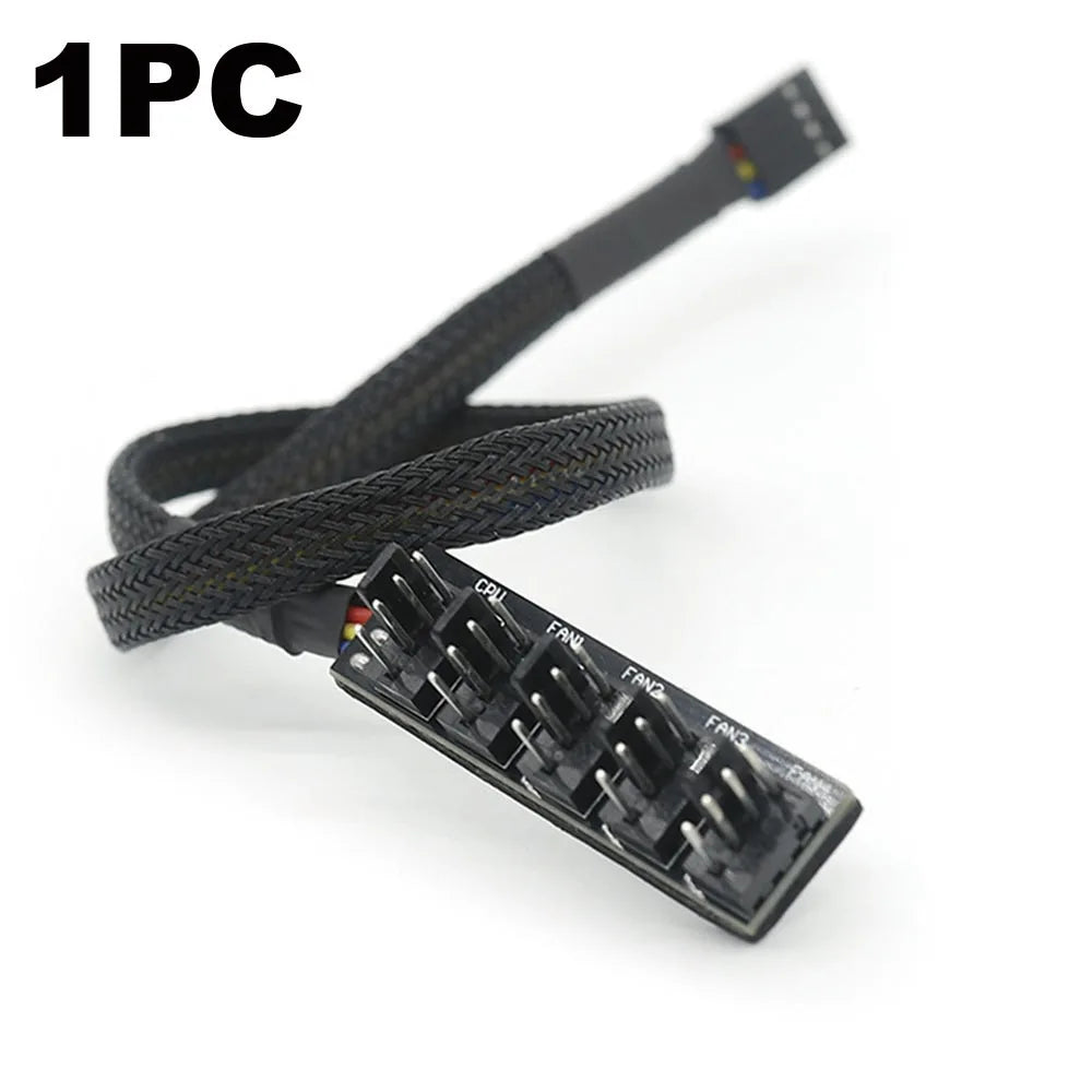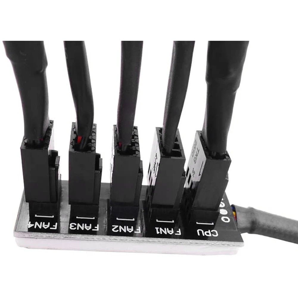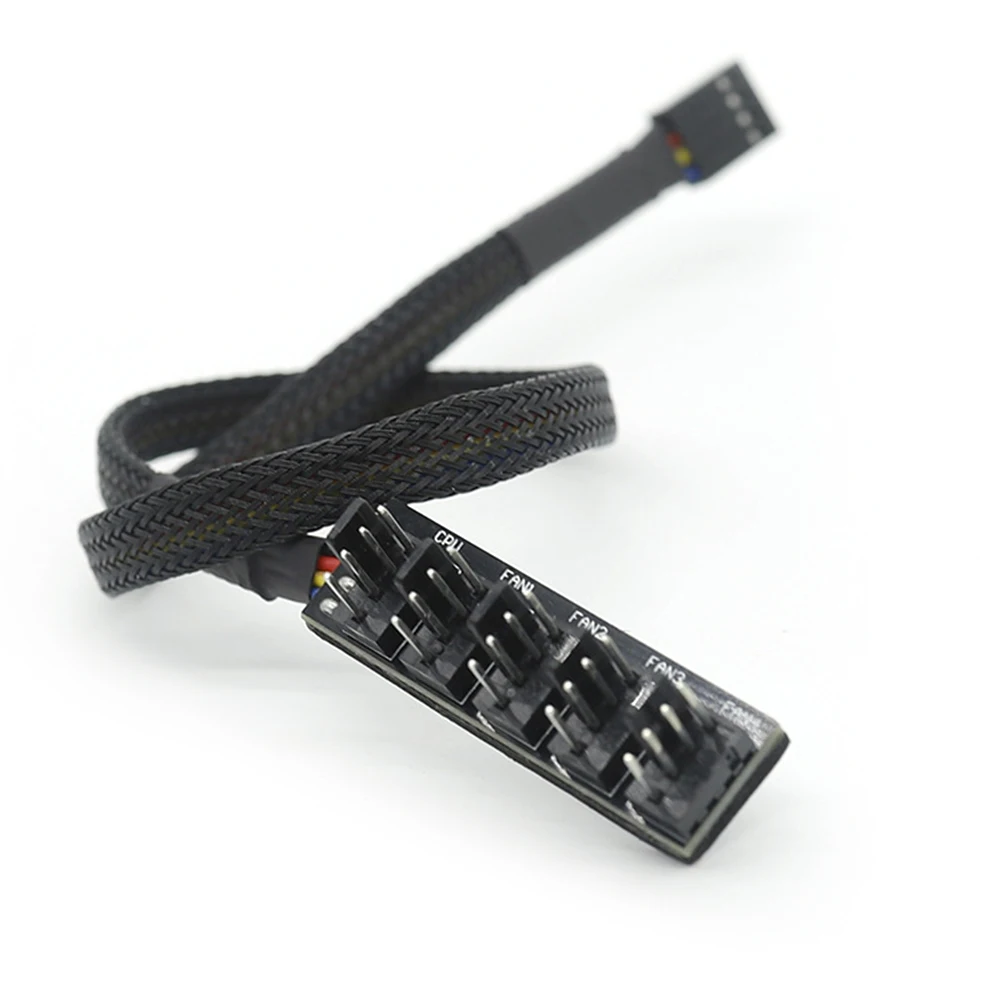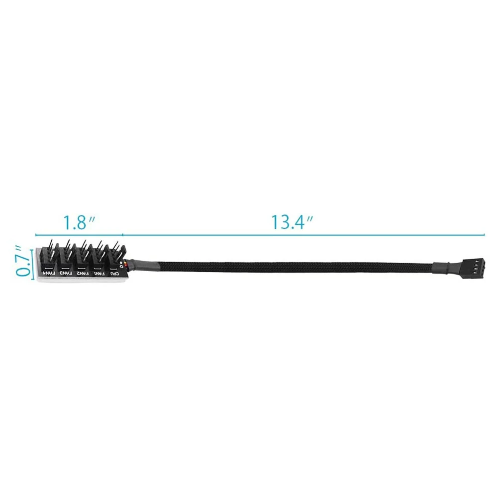 Support 4-pin and 3-pin fans cable, the 1 to 5 splitter 5 way fan power extension cable compatible with 4-pin and 3-pin PC case motherboard fans.