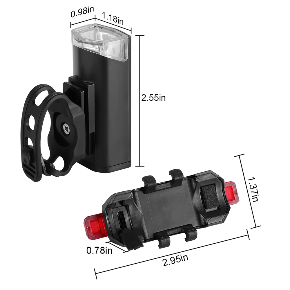 - USB Rechargeable: Both lights have built-in rechargeable Li-ion batteries and can be easily charged from a computer or any device with a USB port.