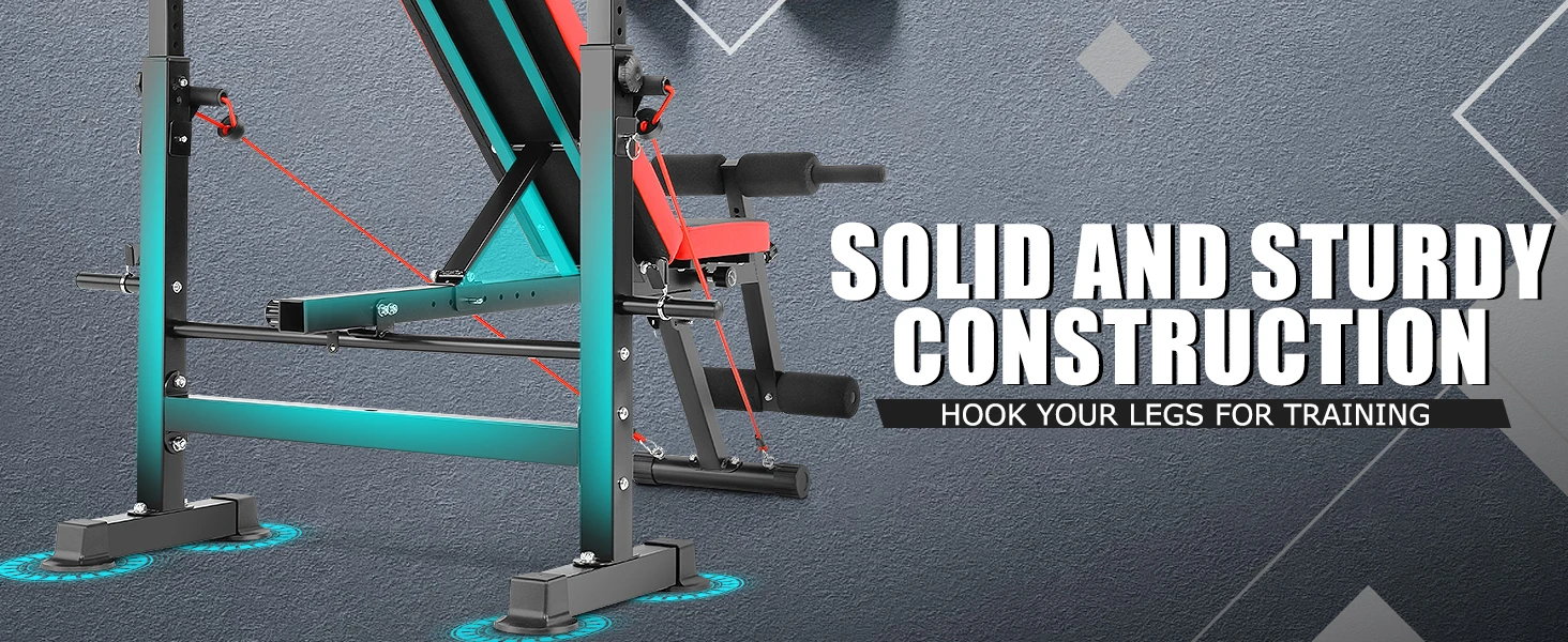 Strong 5 in 1 Rack & Bench set for barbell and dumbbell, this multifunctional machine is ideal for you to more easily emphasize lower abdominal muscles and build the abs you want in less time.