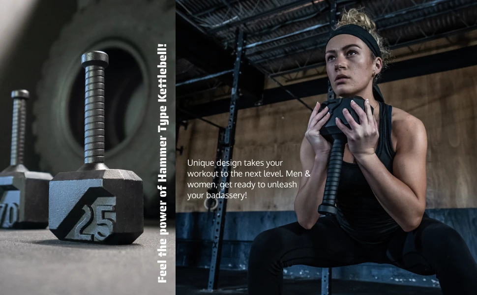 Hammer Type Kettlebell - A unique design to reflect the thor hammer weight power seen only in a kettlebell hammer. Feel the force of badassery with kettlebell workouts for women and men