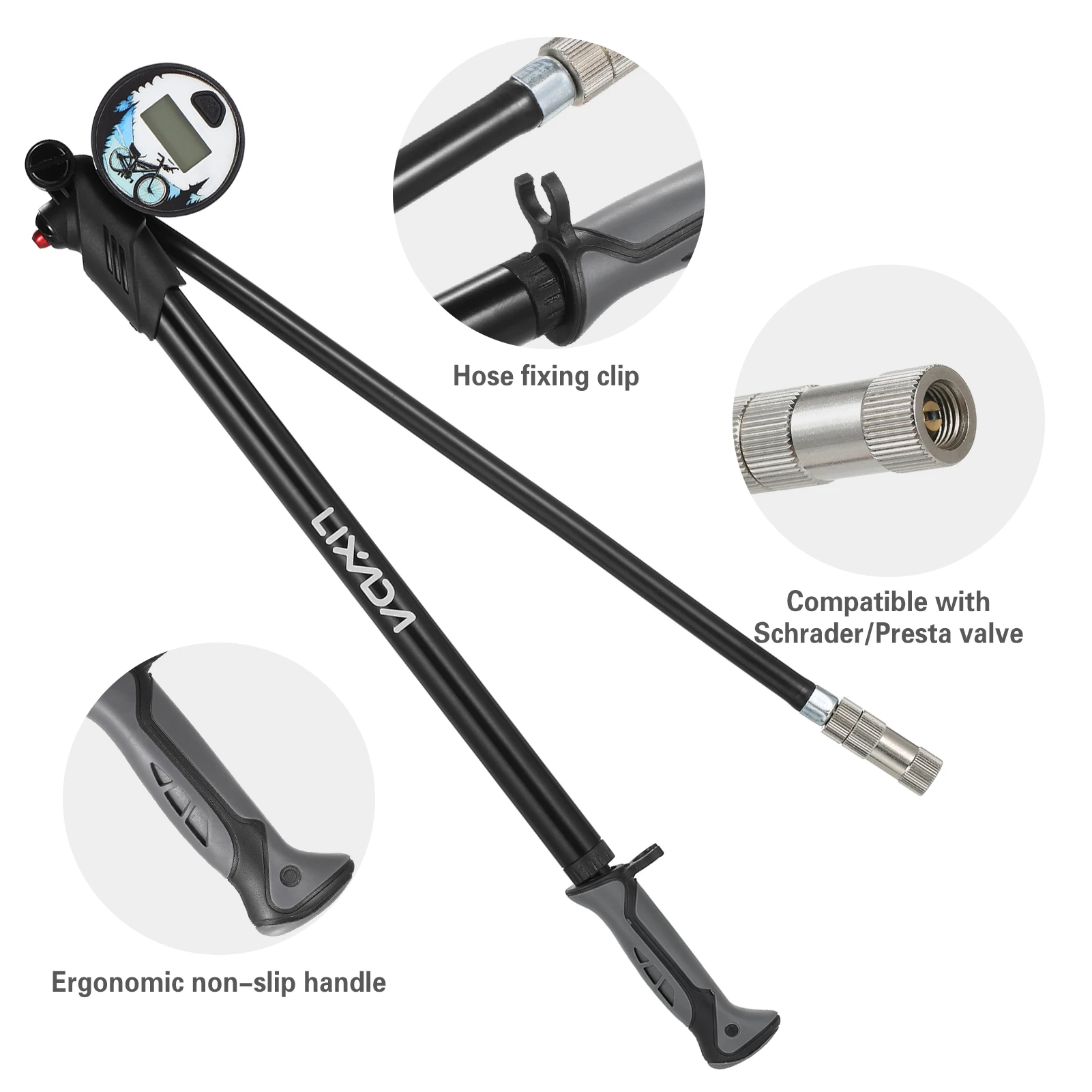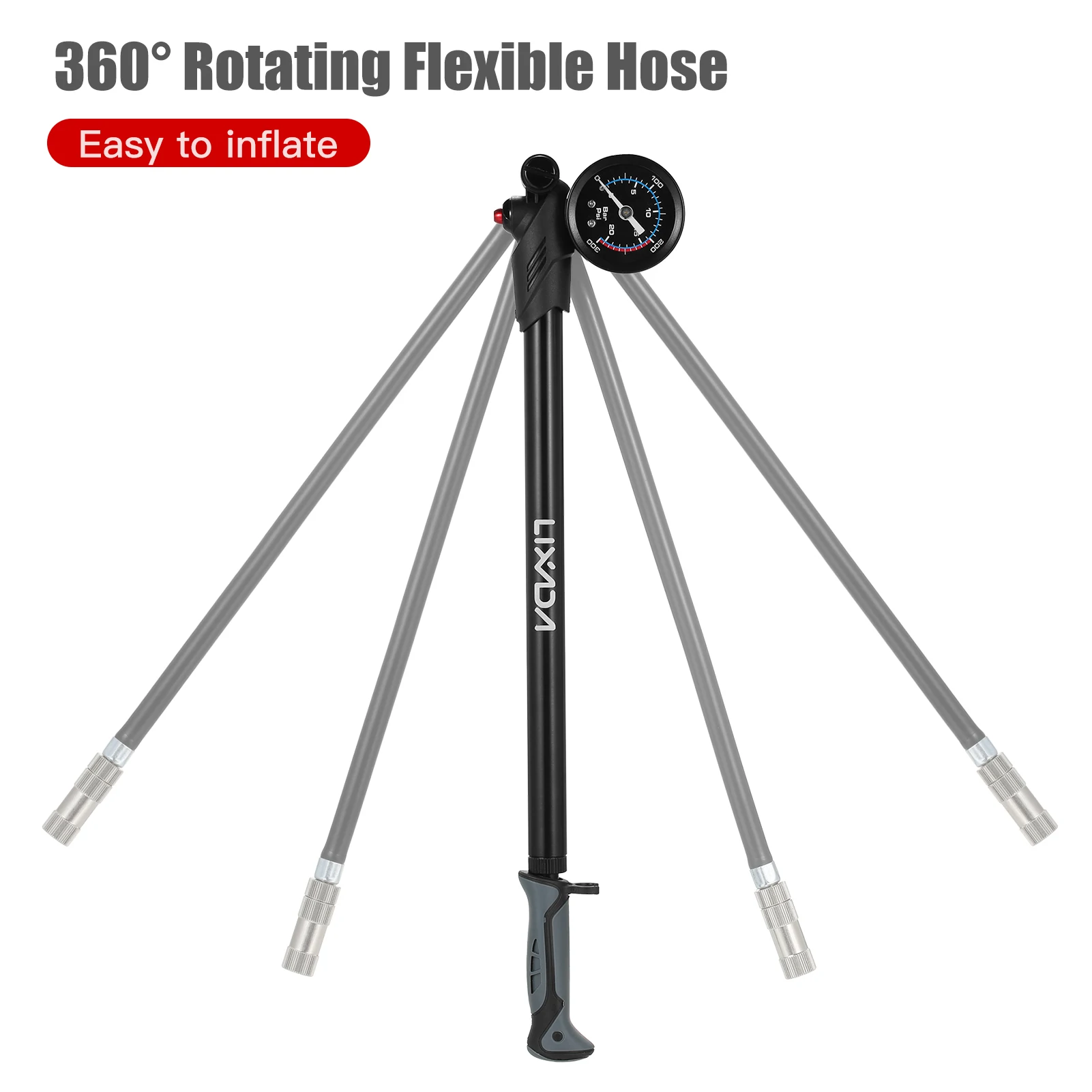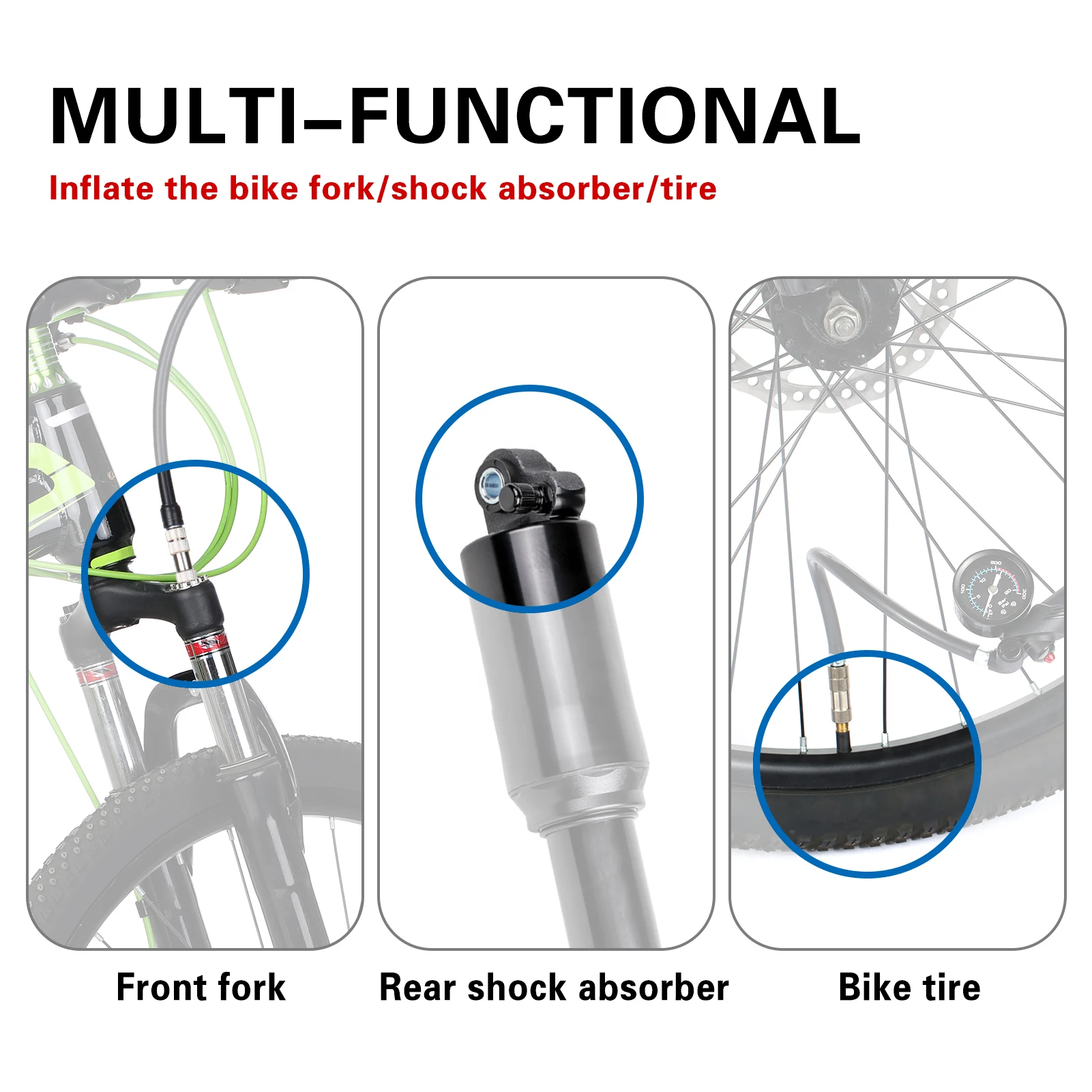 Can be used to inflate bike fork, rear shock absorber, bicycle tire.