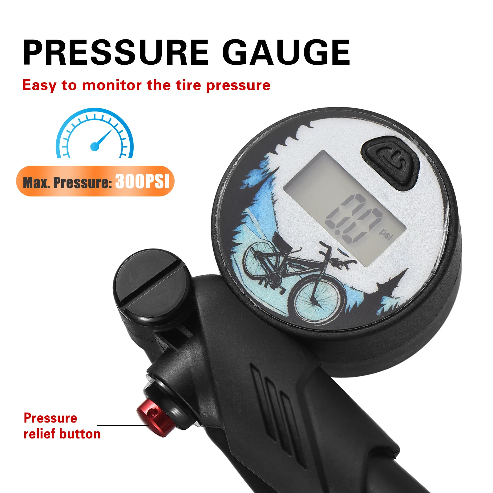 Easy to check the pressure on the gauge during inflating, max. pressure: 300PSI.