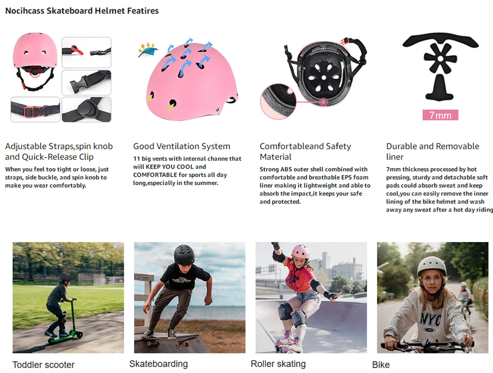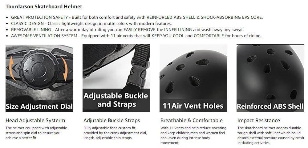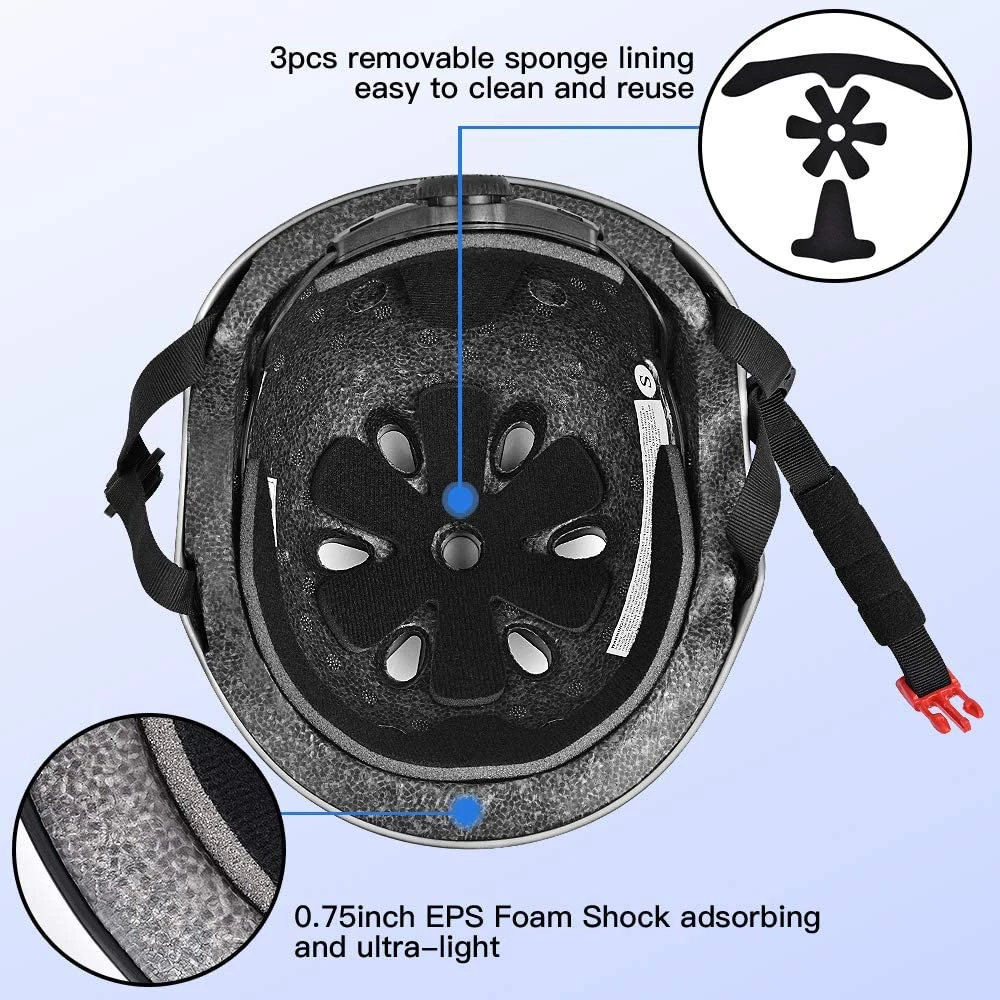 2. EXTRA REMOVABLE LINING - Skateboard helmet with removable liner for different head sizes and easy to wash the sweat away.