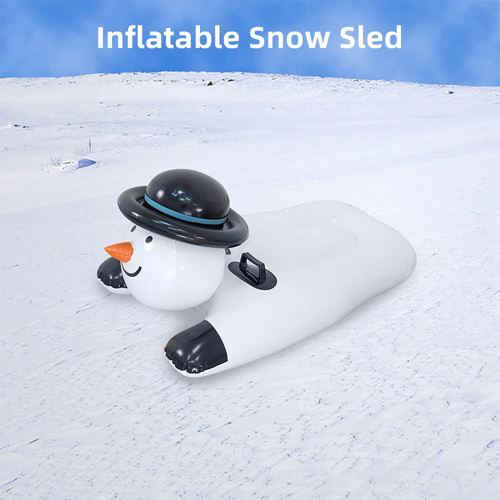 Winter Snowman Snow Tube Inflatable Snow Sled Double Handles Ski Board for Kids